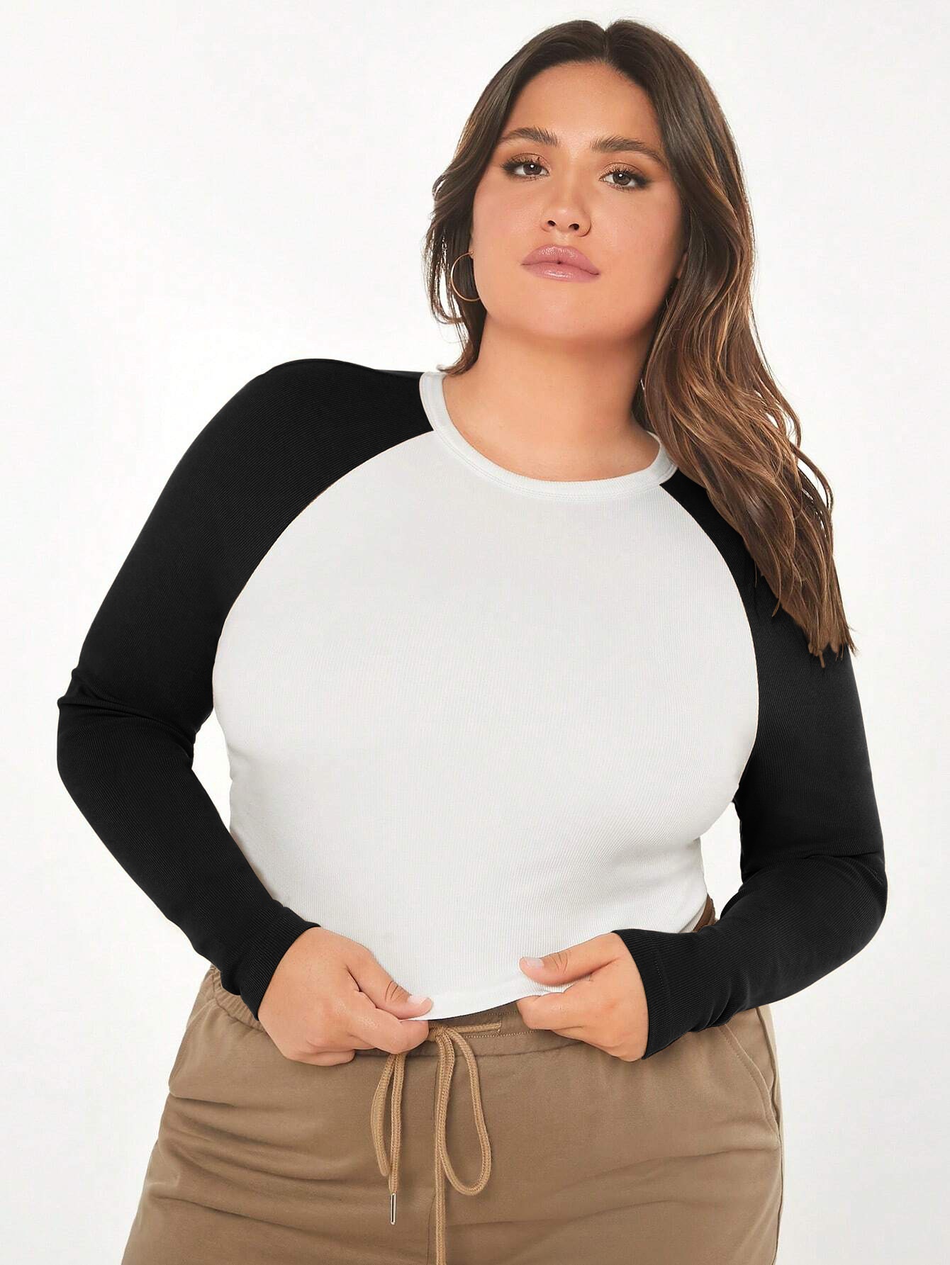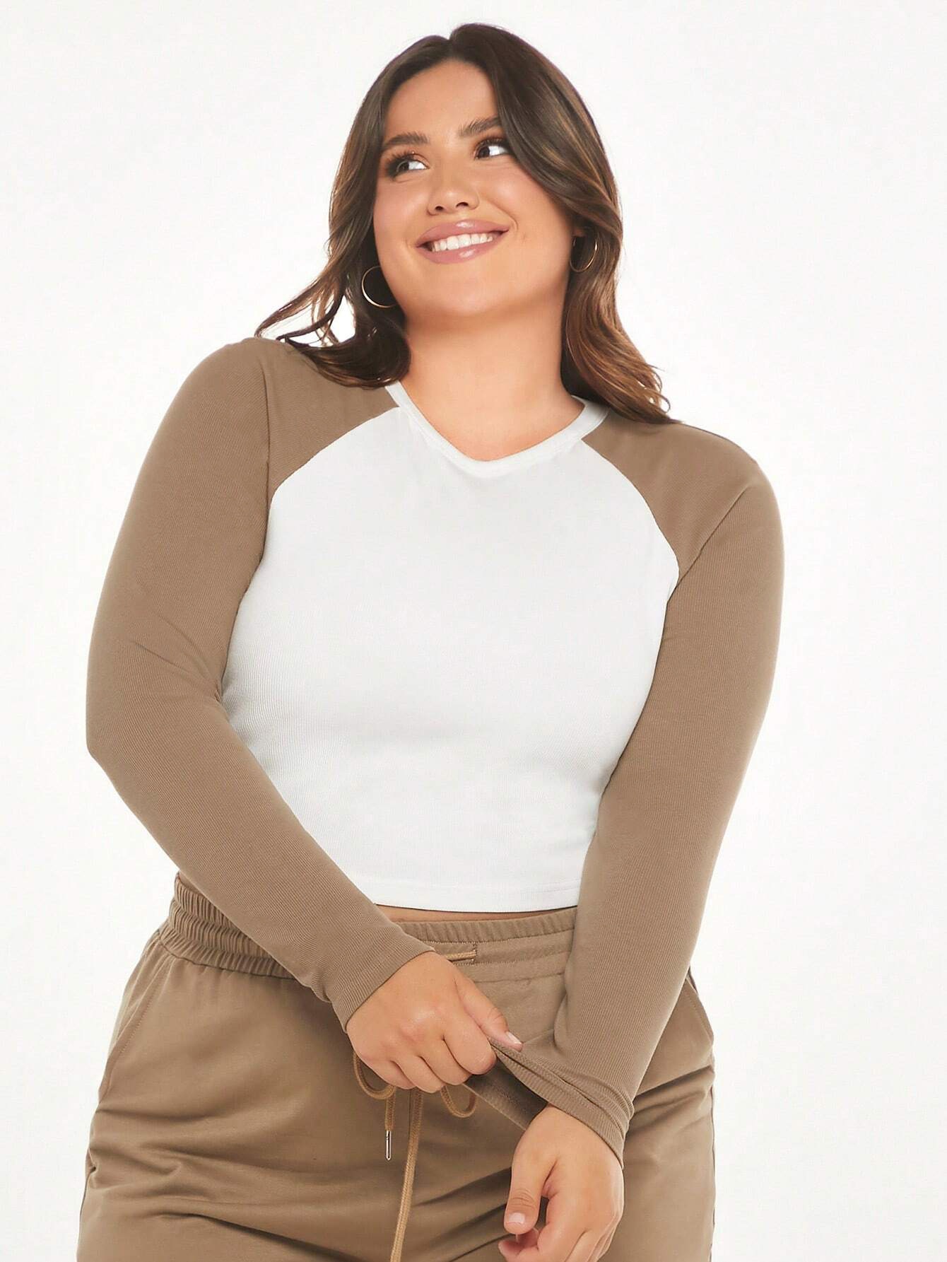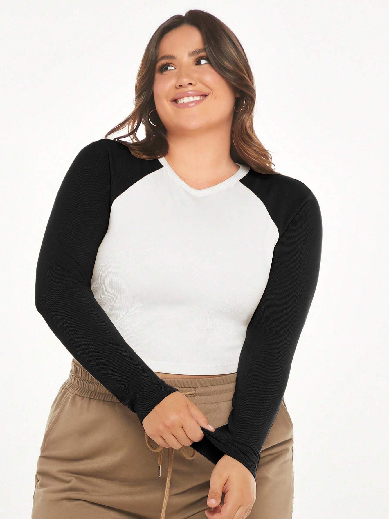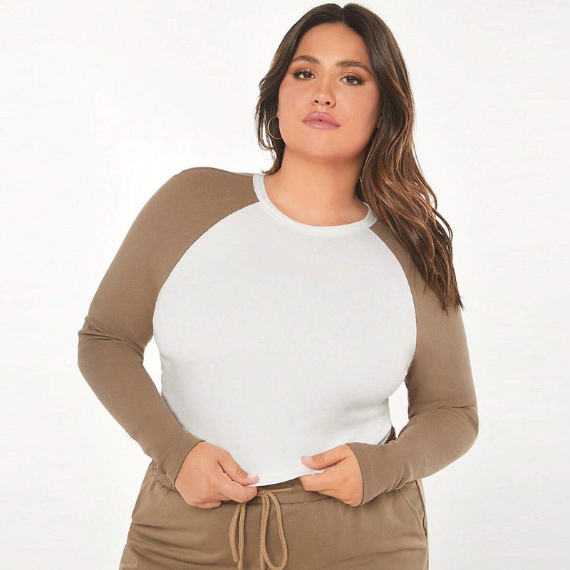 Women's Slim-fitting Round-neck Short Spliced Color-block Long-sleeve Top