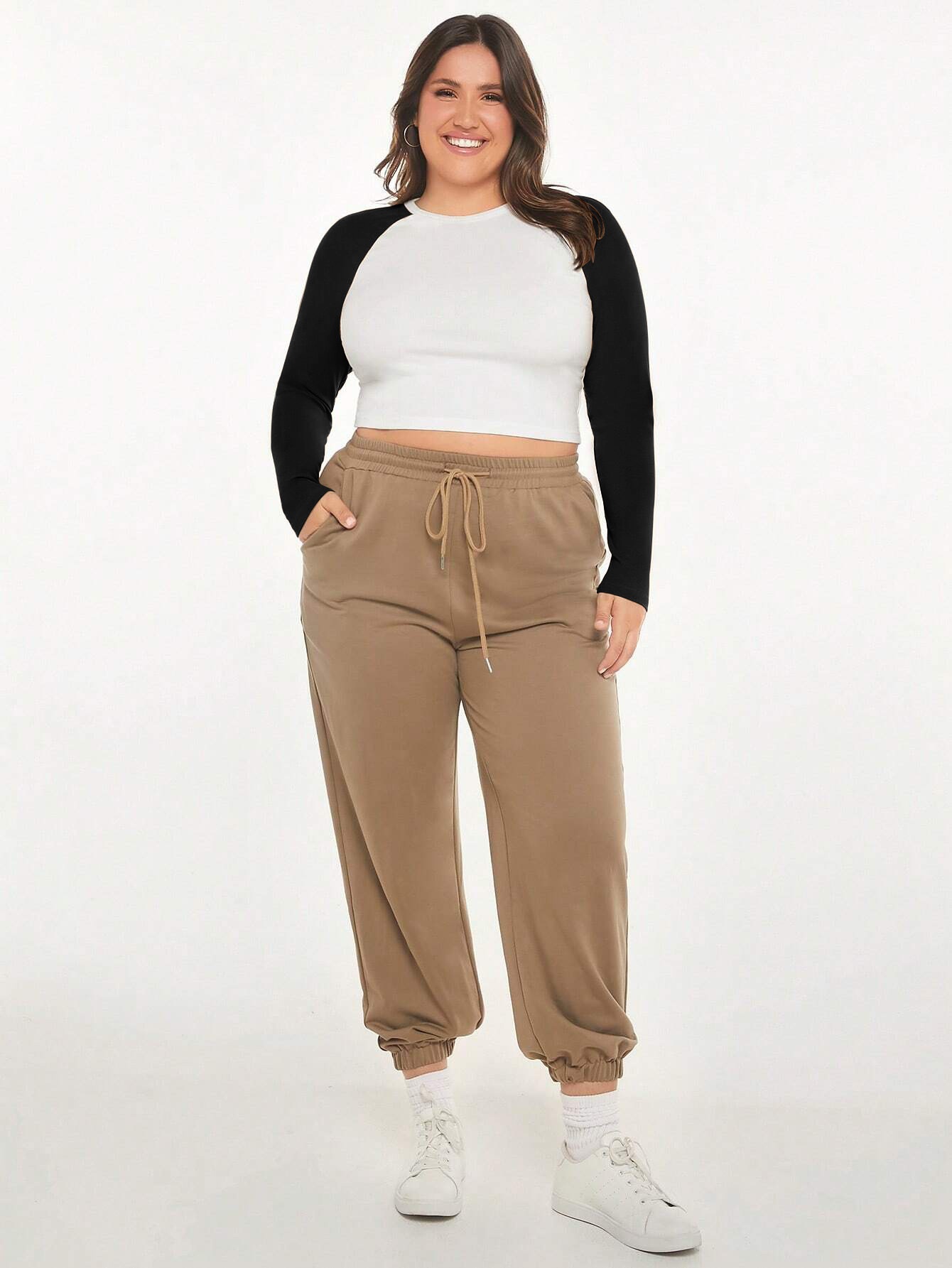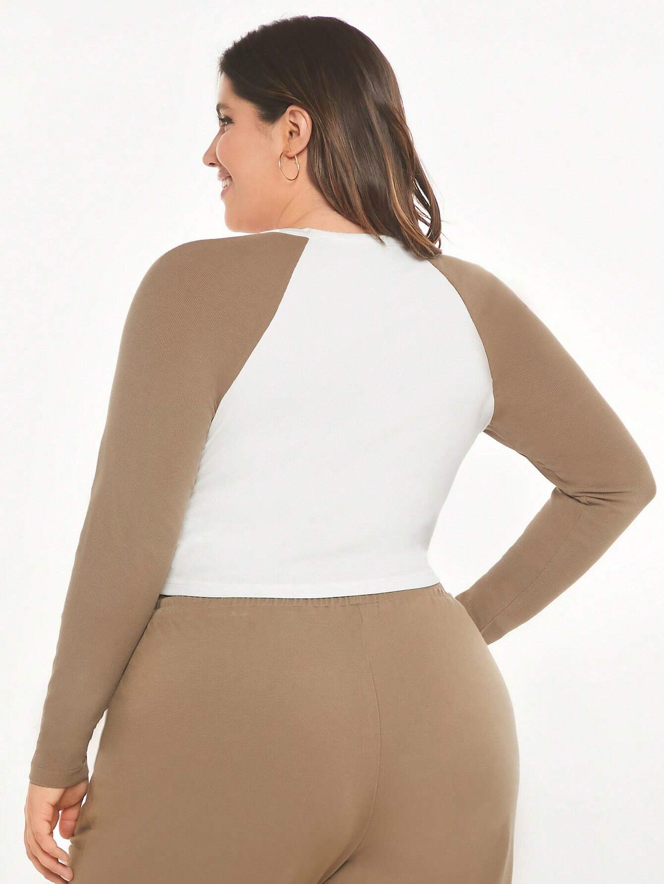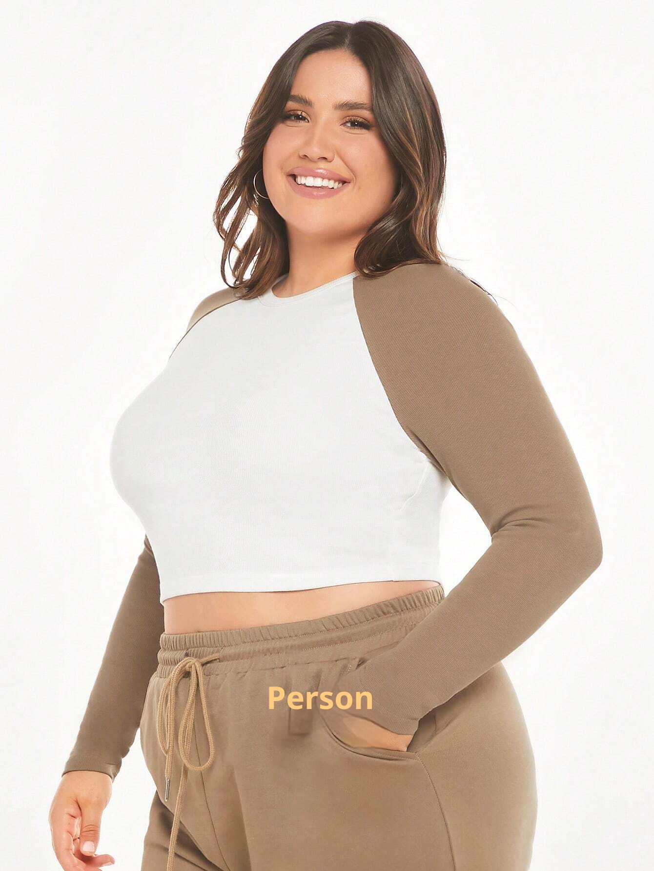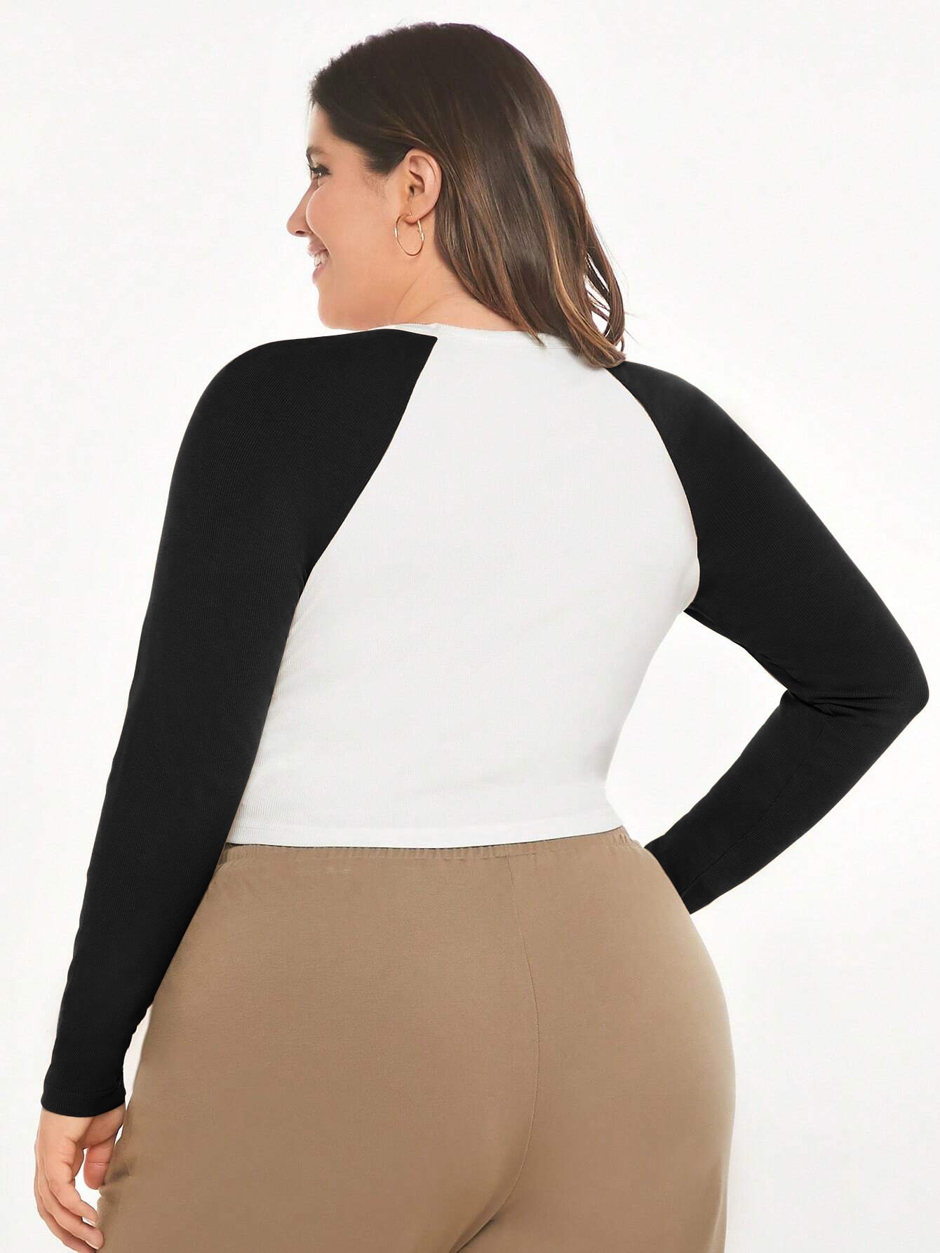 Women's Slim-fitting Round-neck Short Spliced Color-block Long-sleeve Top